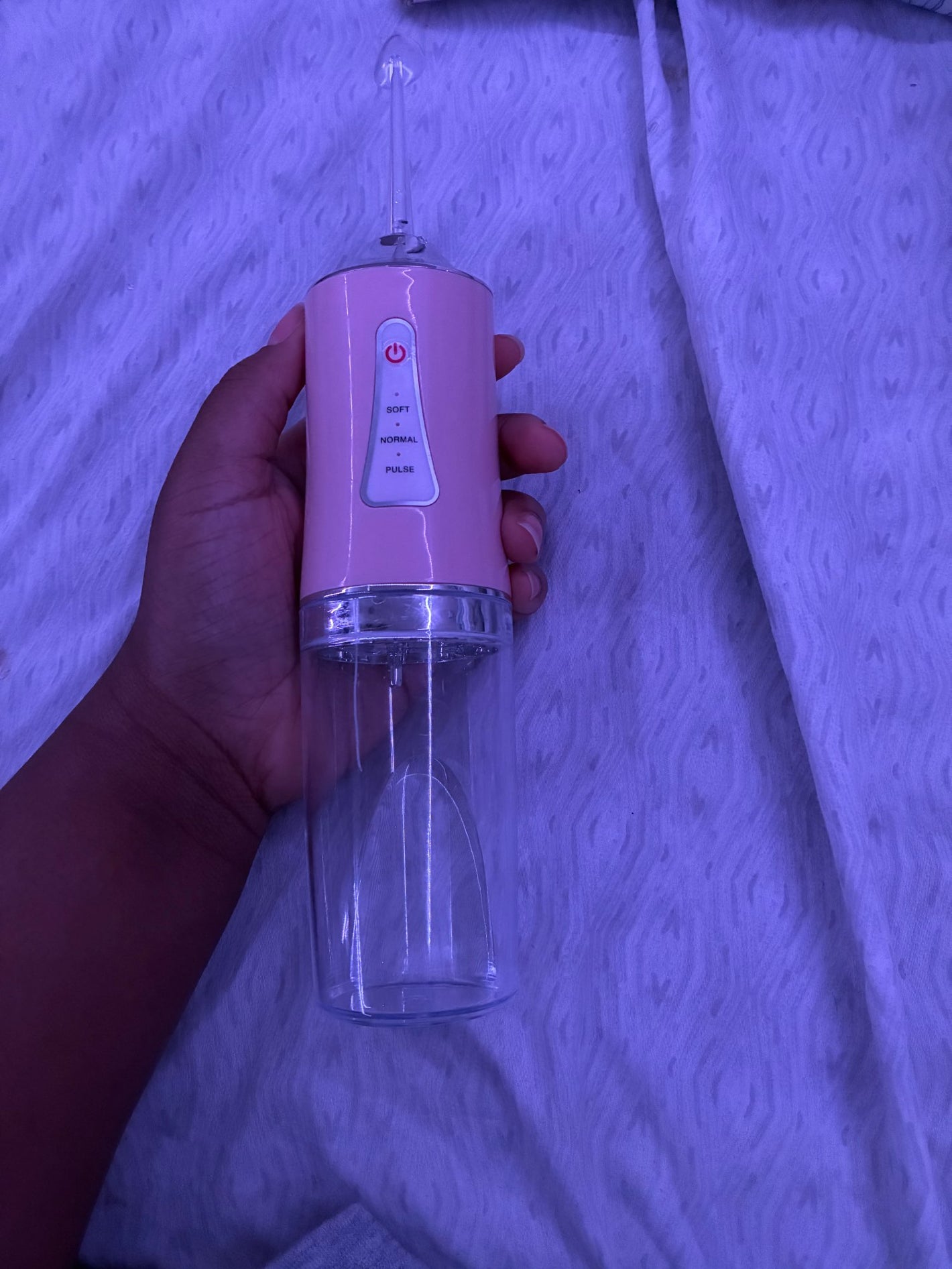 Sí, puedes mezclar agua tibia con una pequeña cantidad de tu enjuague bucal favorito para una sensación extra de frescura. Solo asegúrate de enjuagar el dispositivo con agua limpia después de usarlo para prolongar su vida útil.